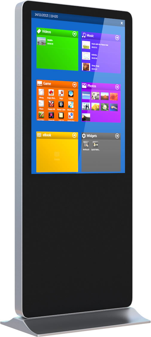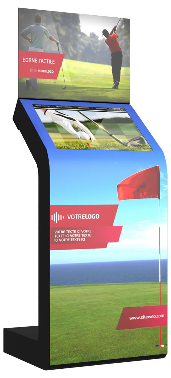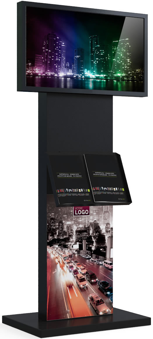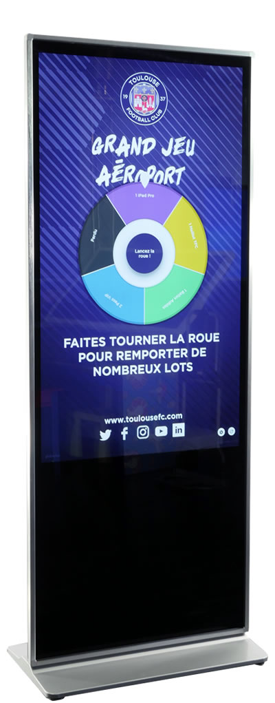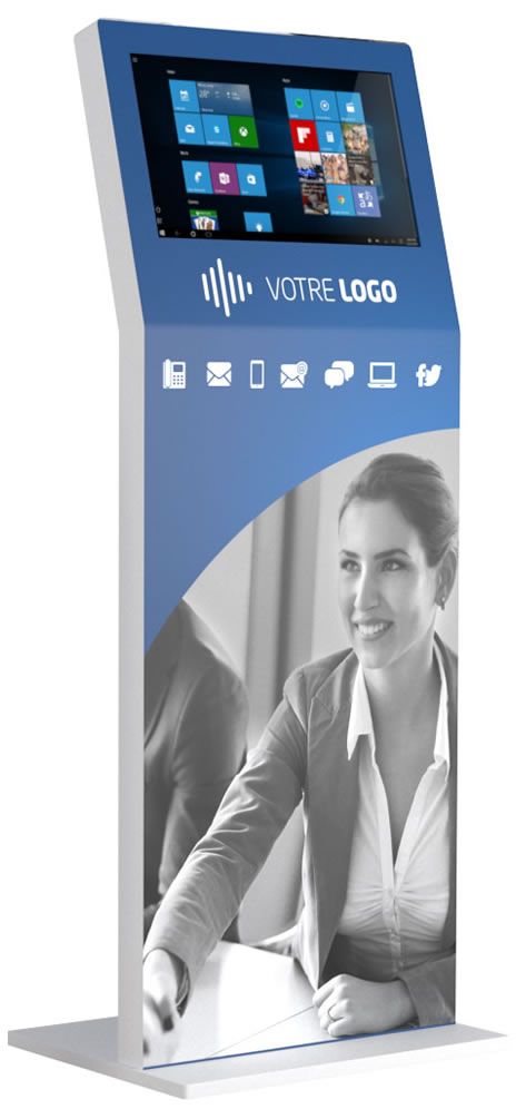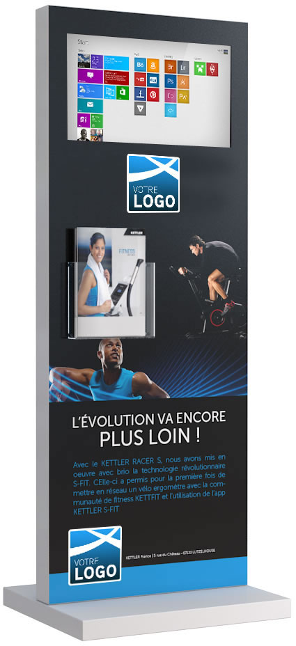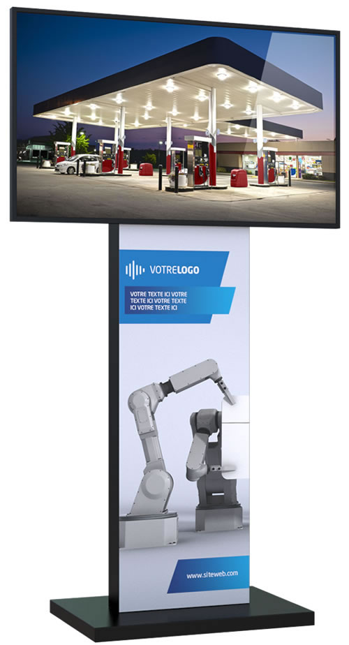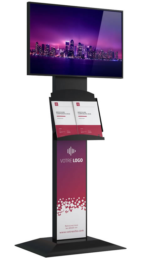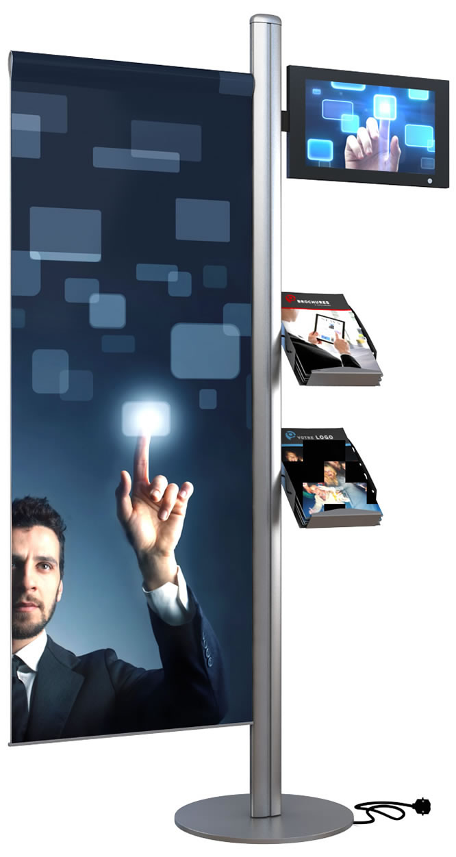Nous mettons aussi à votre disposition des stands tissu multimédias adaptés à vos évènements, avec un choix de bornes interactives et de totems vidéo à affichage dynamique.